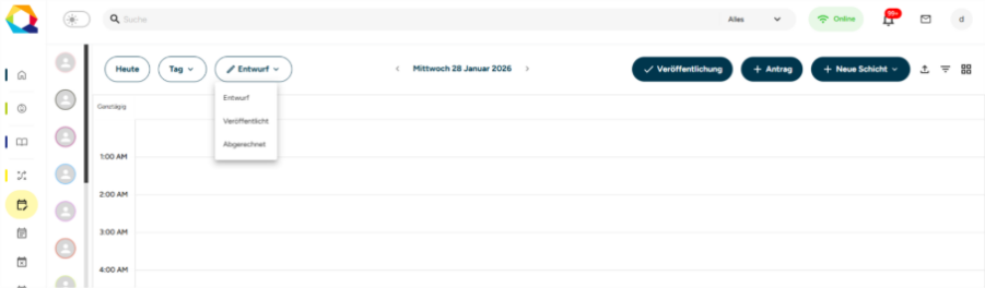 Der Entwurfsstatus ist die Bearbeitungsphase des Dienstplans.