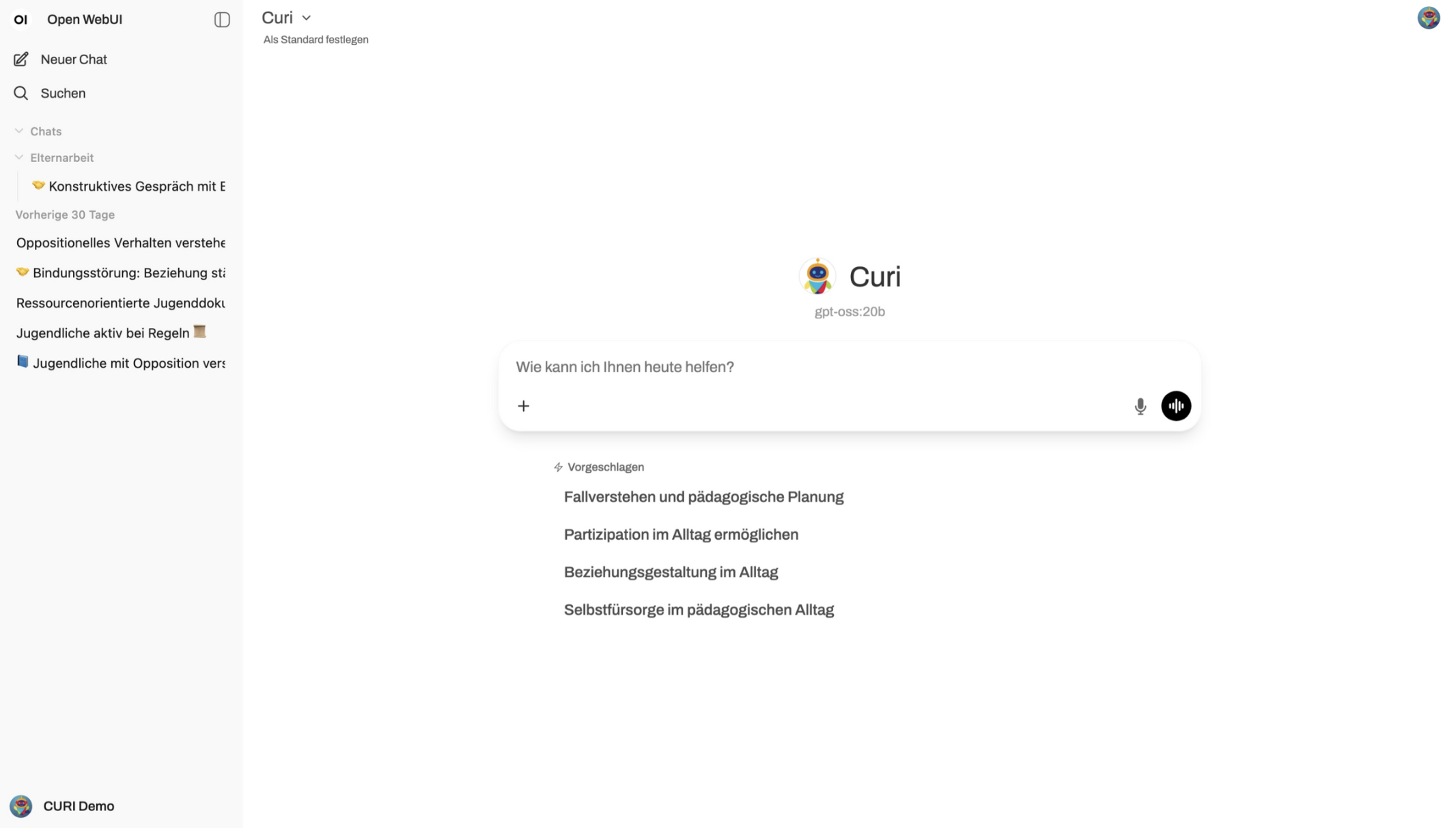 - Beispiel: Prompt: „Wie organisiere ich einen Workshop zu nachhaltiger Ernährung?“ CURI nutzt den Prompt, um den Kontext zu verstehen und dir passende Antworten zu liefern.