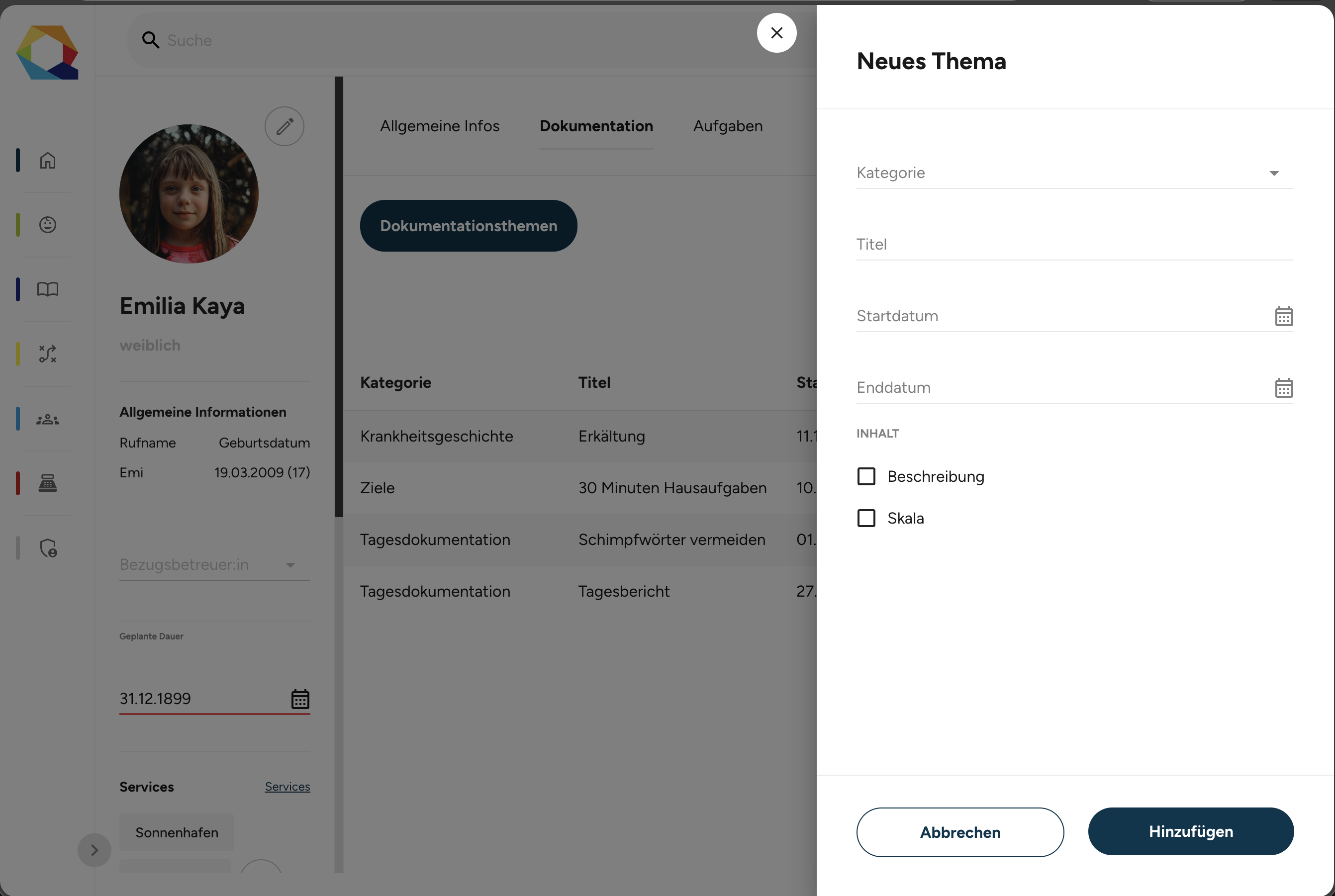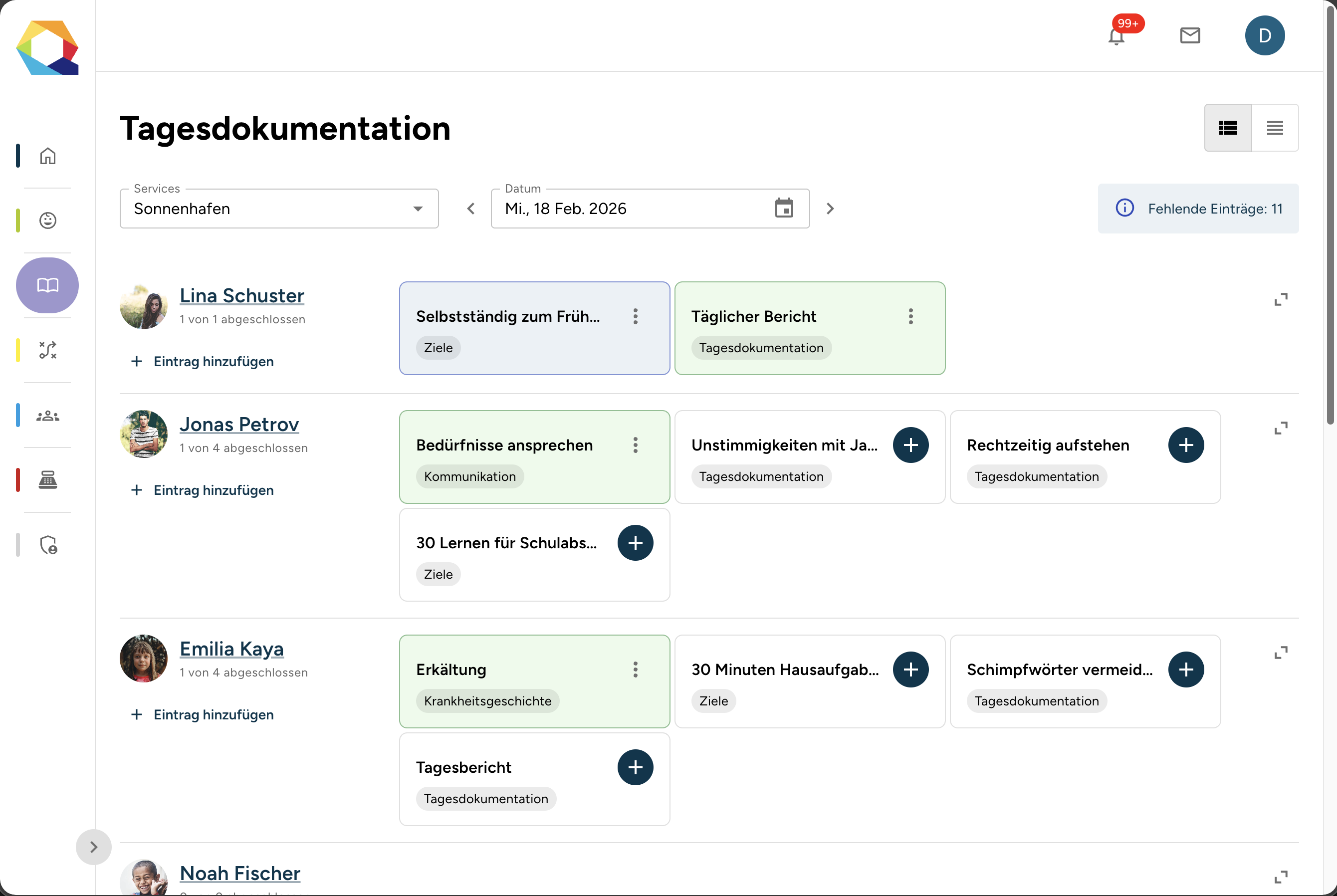 Diese Elemente werden später in der Tagesdokumentation angezeigt und sind auszufüllen.