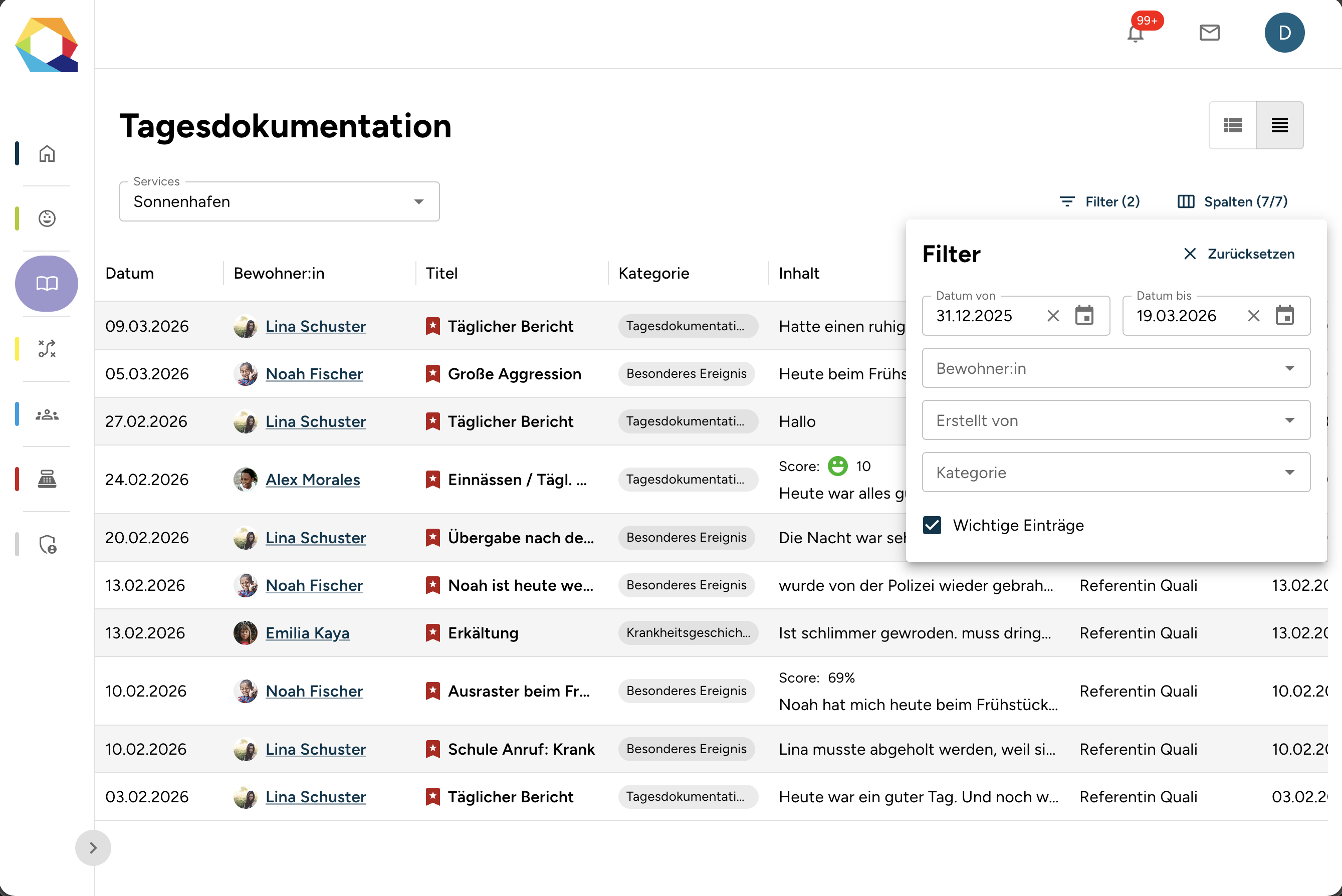 Die Tagesdokumentation dient dazu, Ereignisse, Beobachtungen oder regelmäßige Dokumentationspunkte im Alltag festzuhalten. In Qualicura One gibt es dafür zwei Arten von Einträgen: